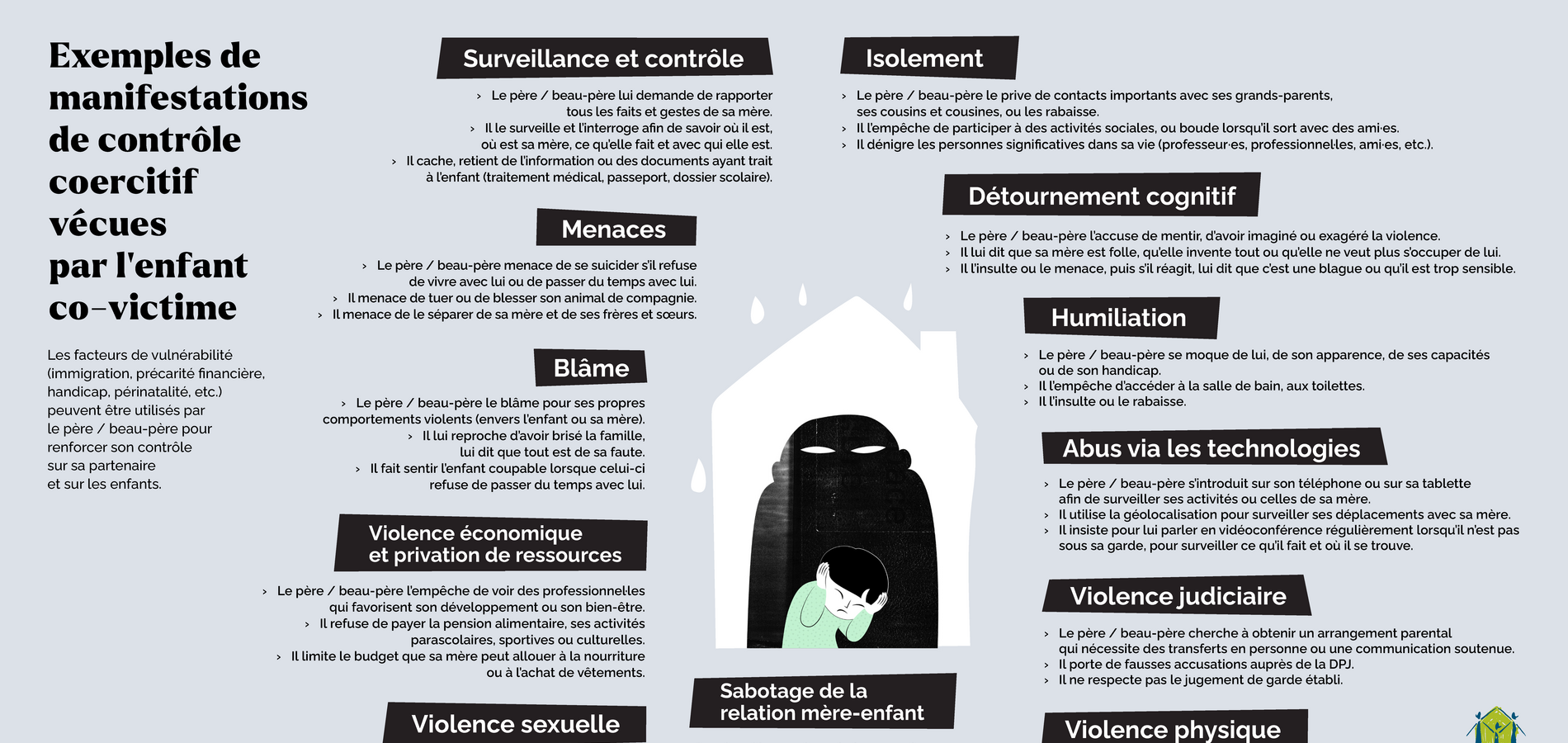 RegrouExemples de manifestations de contrôle coercitif vécues par l'enfant co-victime, 2026